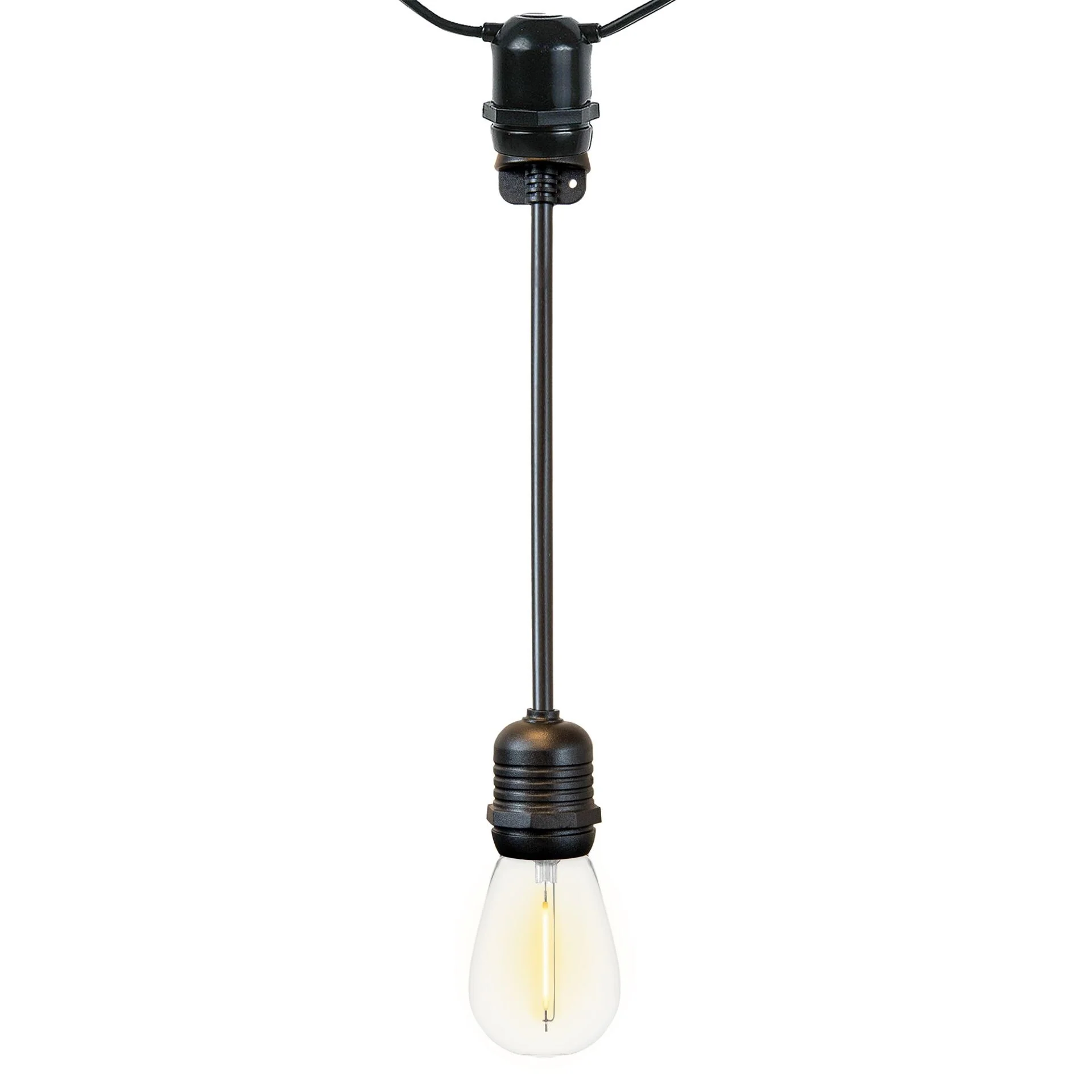 Heavy-duty outdoor string lights have never been more enchanting, thanks to the Novelty Lights E26 Medium Base 6-Inch Socket Extenders. Commercial grade and tailored for customizing outdoor lighting, this product revolutionizes the way you illuminate your backyard, patio, or cafe.Sporting a sleek black color, the socket extension adds a dash of elegance to your outdoor lighting. The light bulb extension socket forms a tight water-resistant seal, ensuring your lights' longevity and shielding them from harsh weather conditions.Durable and safe, this product is designed to integrate seamlessly with most any medium base E26 stringer. The E26 socket extender lets you create drop extensions for your string lights, adding depth and dimension to your lighting design. Built with the same solid construction and hearty components as our heavy-duty stringers, you won't be sacrificing durability for design when choosing these extenders.Built to endure, the light bulb extender is UV resistant for outdoor use, ensuring they won't dull or damage under the harsh sun rays. Rest assured, this addition to your string set will remain vibrant and beautiful for a years to come. Rated for a maximum draw of 11 watts per socket, these extenders can handle most any standard patio string light bulb, whether LED or incandescent.In essence, our Novelty Lights socket extenders E26 are a harmonious blend of style, durability, and efficiency, making them essential for your unique outdoor lighting needs.