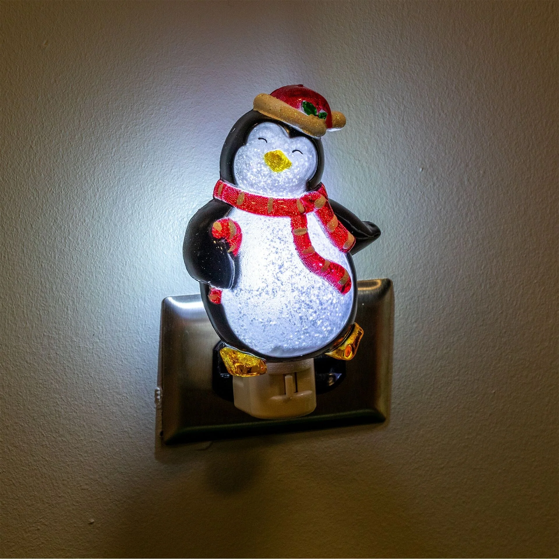 Add holiday cheer to any room with this adorable LED Christmas Penguin Night Light! Perfect for kids' bedrooms, hallways, kitchens, or bathrooms, this festive nightlight features a cute penguin wearing a Santa hat and red scarf, glowing with a warm, comforting light.