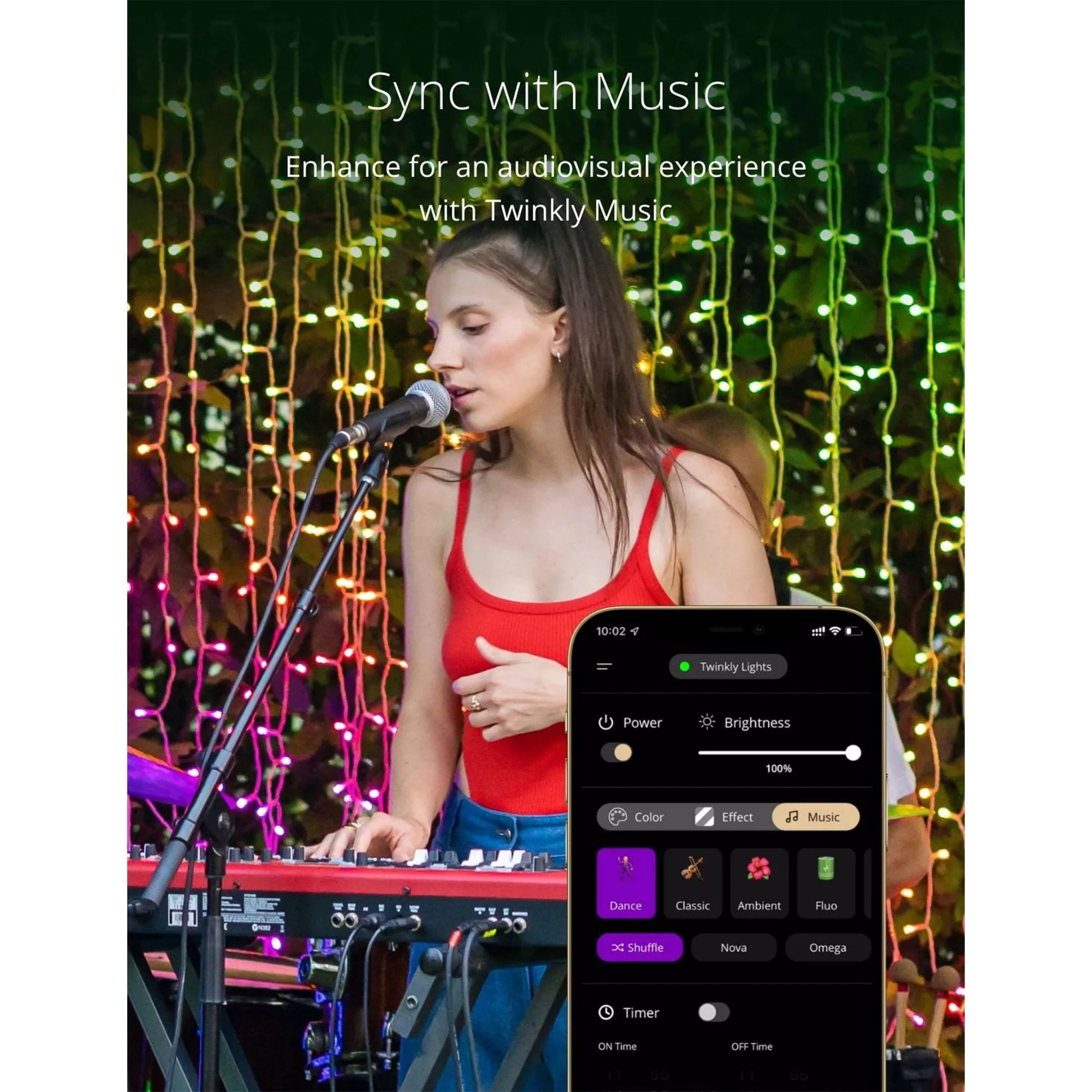 • Twinkly mobile smartphone app allows you to easily control the lights and produce 16 million color variations for a custom look with Wi-Fi and Bluetooth