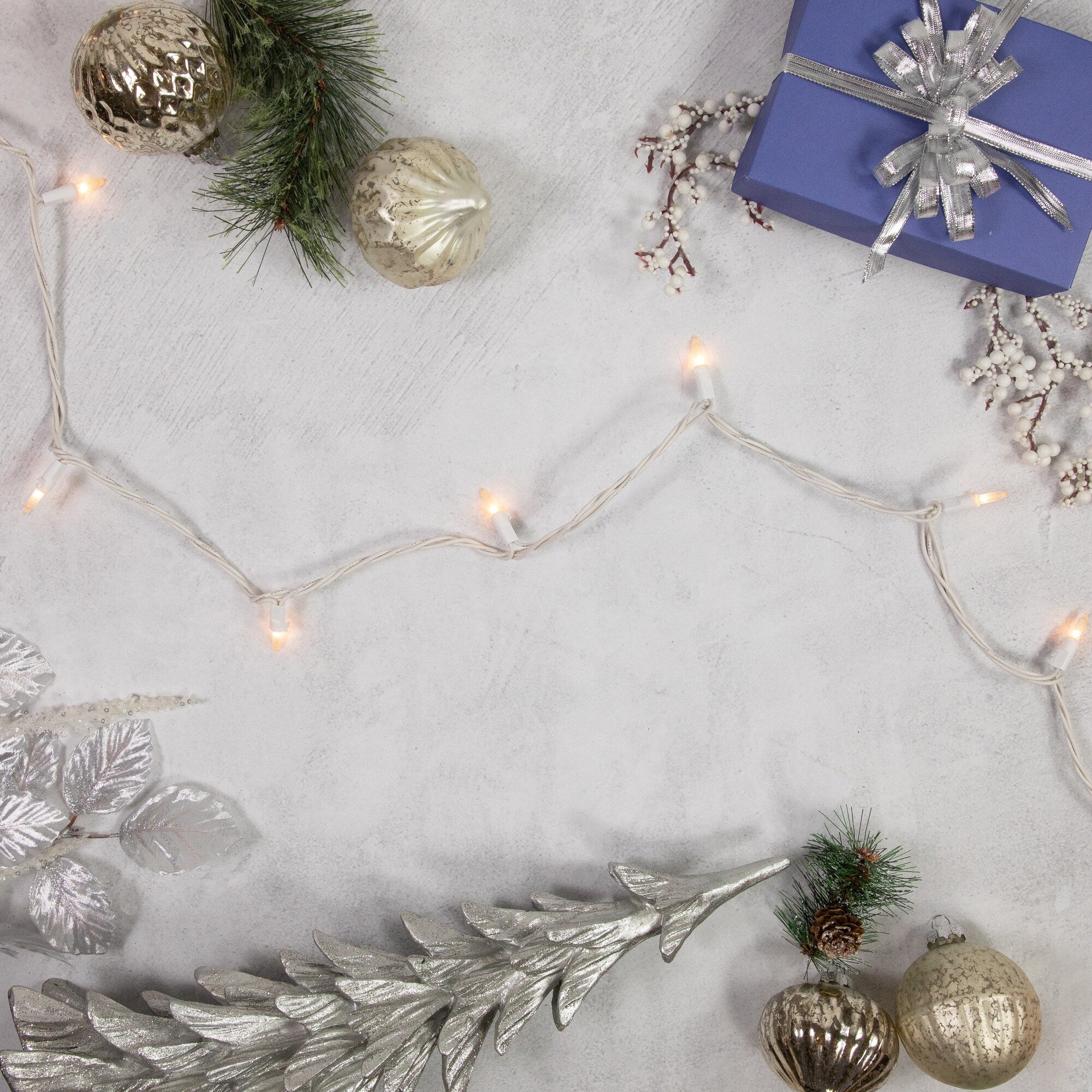 100 Count Frosted Clear Mini Christmas Lights - 49.5' White Wire