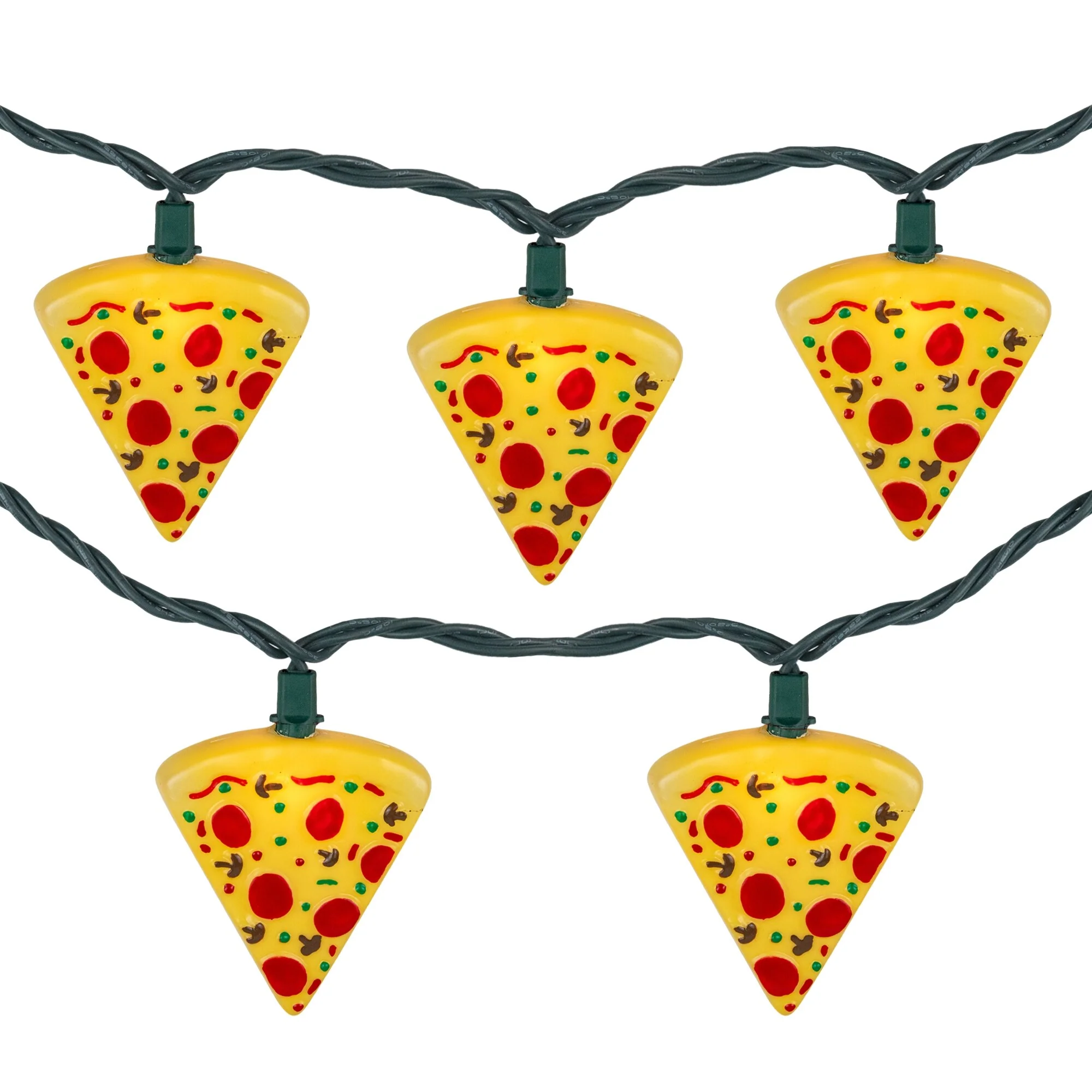 Pepperoni Pizza Indoor Outdoor Patio Light Set 6' Green Wire 10ct