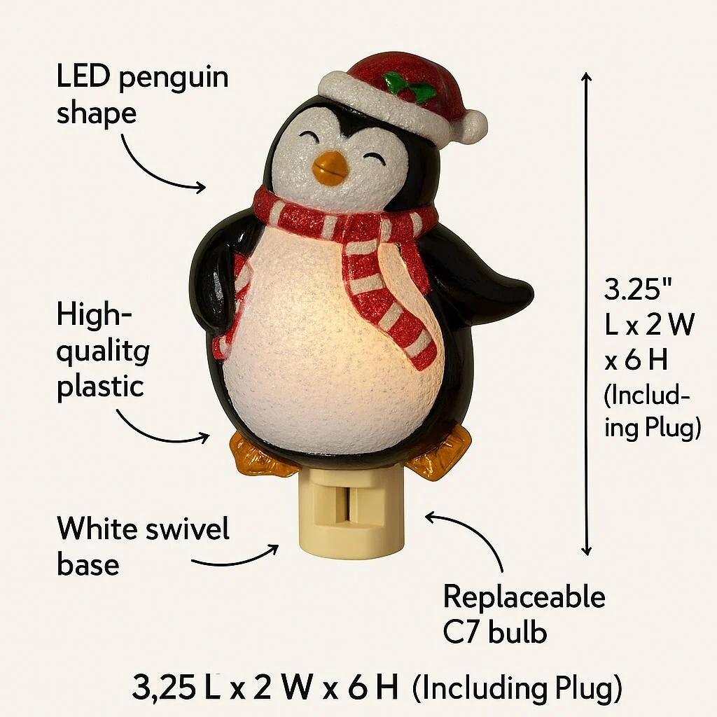 Novelty Lights LED Penguin with Scarf Christmas Night Light with Swivel Plug