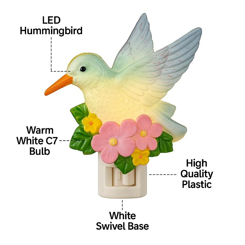 Novelty Lights LED Hummingbird Flowers Spring Easter Night Light with Swivel Plug