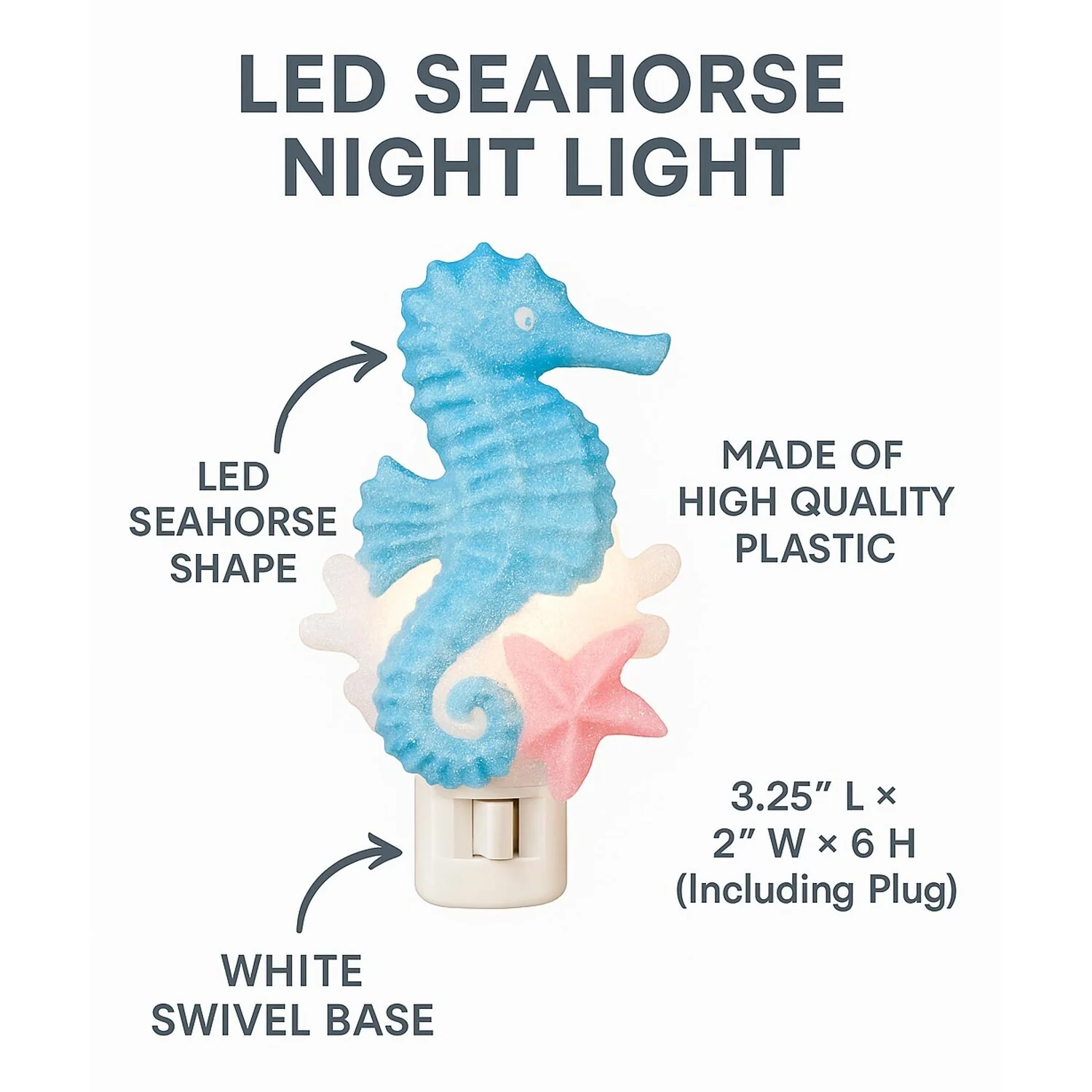 Novelty Lights LED Seahorse Starfish Spring Summer Night Light with Swivel Plug