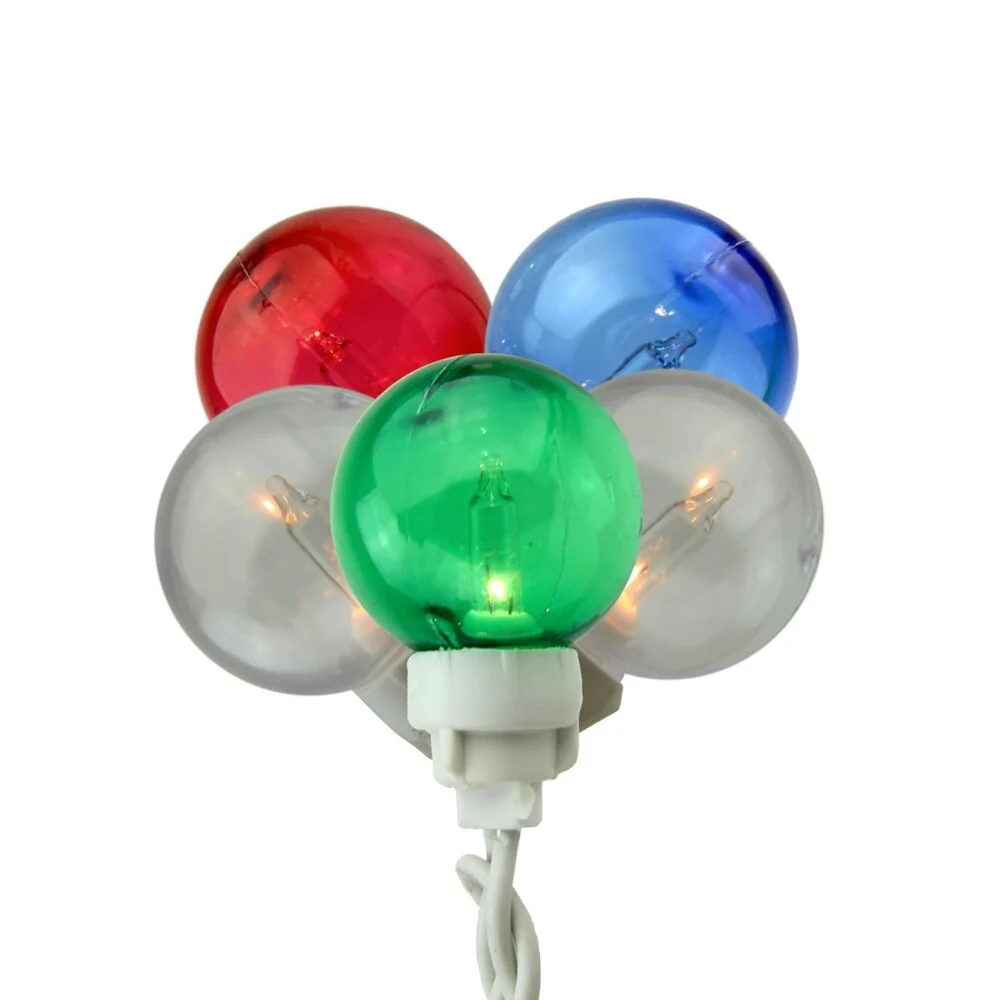 Set of 100 Multi-Color G30 Globe Icicle Christmas Lights - White Wire