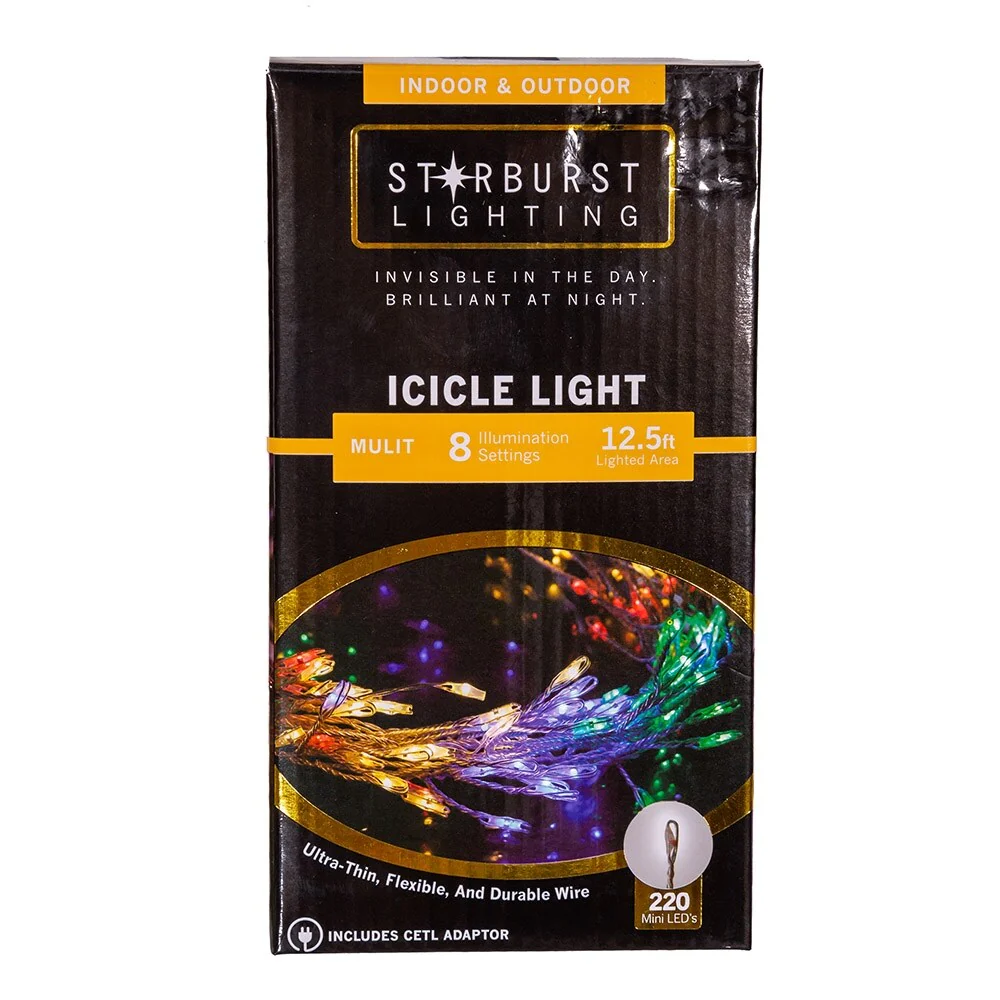 Kurt Adler 12.5-Foot 220-Light Starburst Multi-Color LED Icicle Light Set