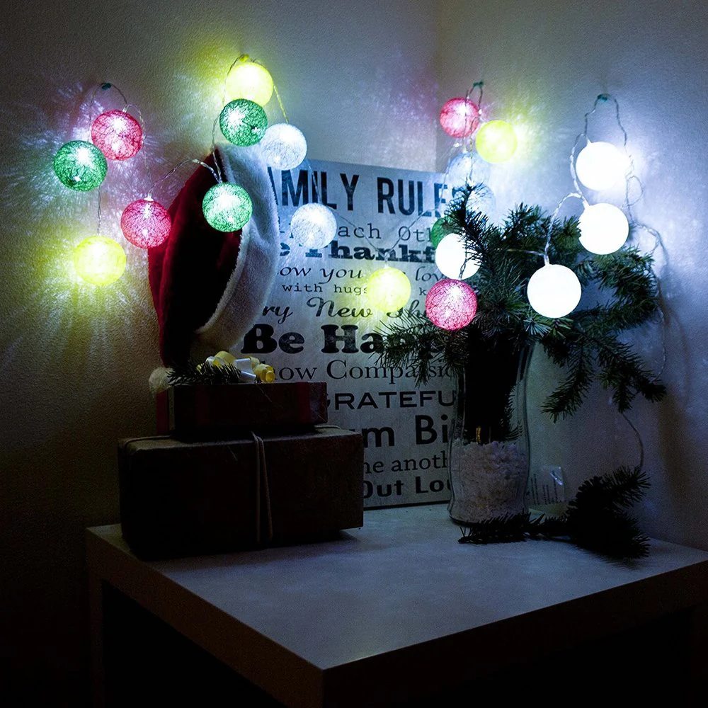 ALEKO Battery 20 LED White Cotton Balls Christmas Light 7 Feet