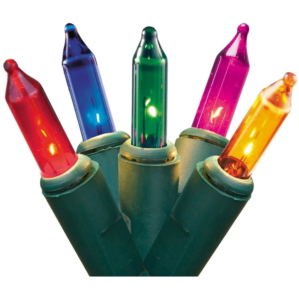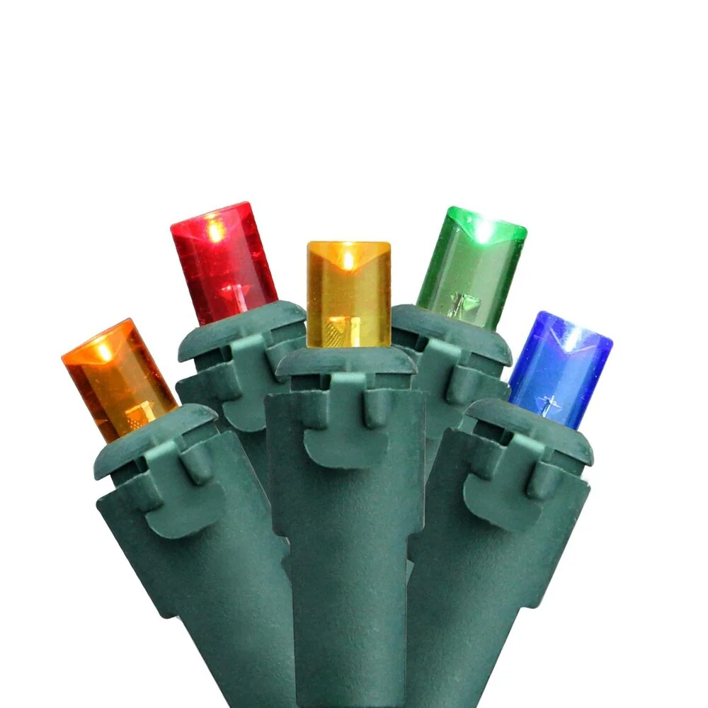 Set of 10 Multi-Color Mini Christmas Lights 10" Spacing - Green Wire