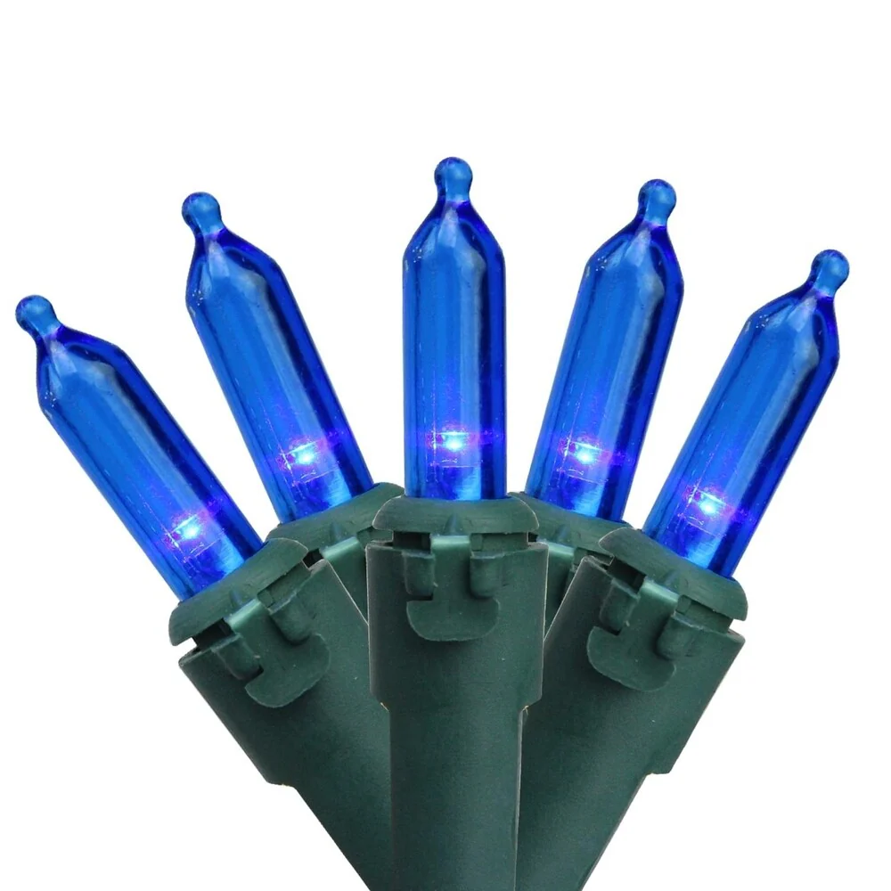 Set of 50 Blue LED Mini Christmas Lights - Green Wire