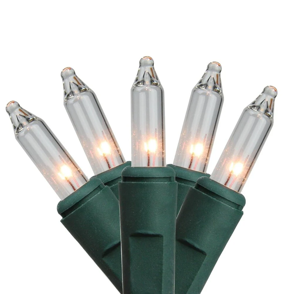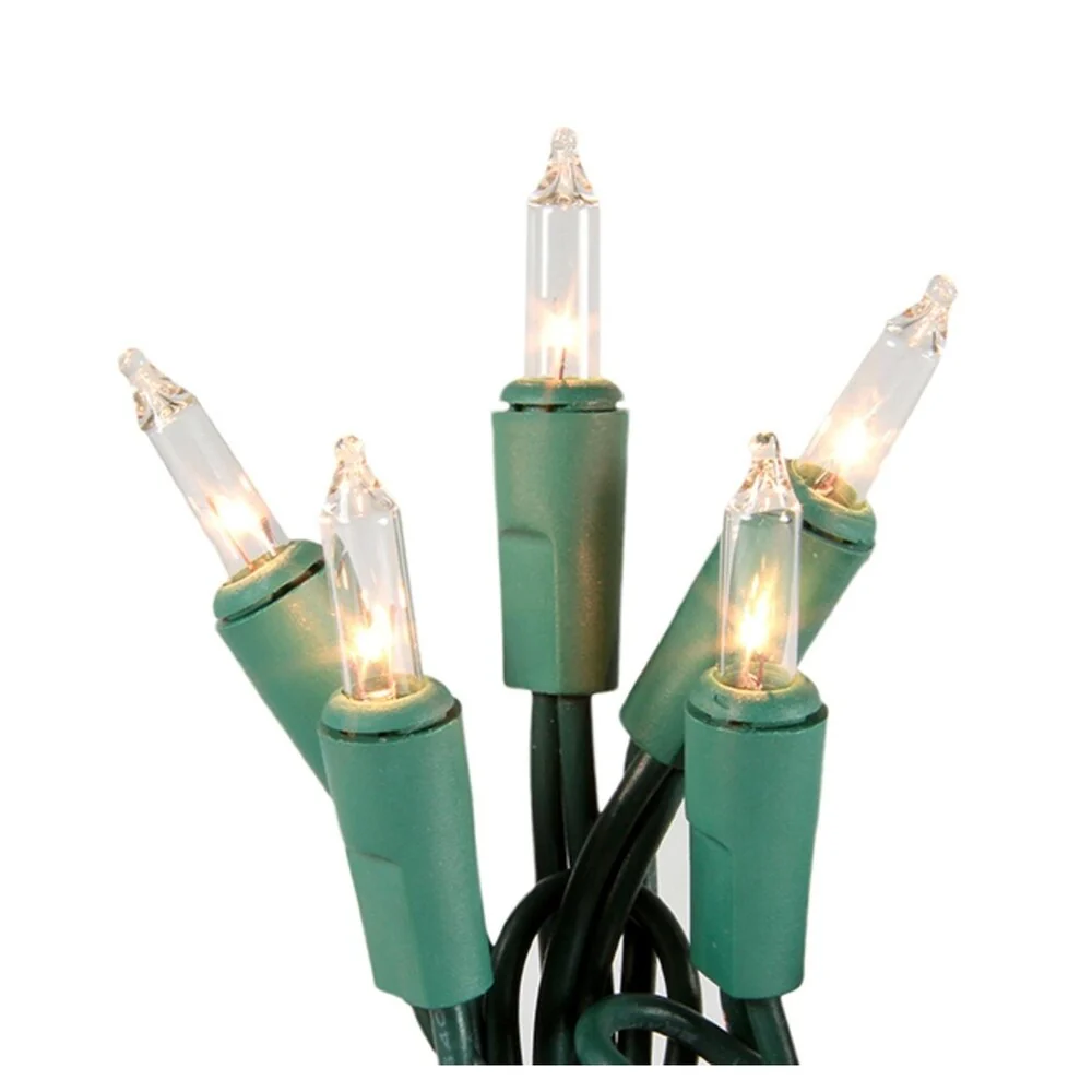 Set of 100 Shimmering Clear Mini Christmas Lights - Green Wire