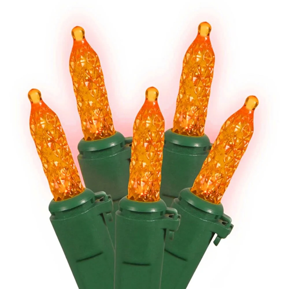 Set of 70 LED Orange M5 Mini Christmas Lights - Green Wire