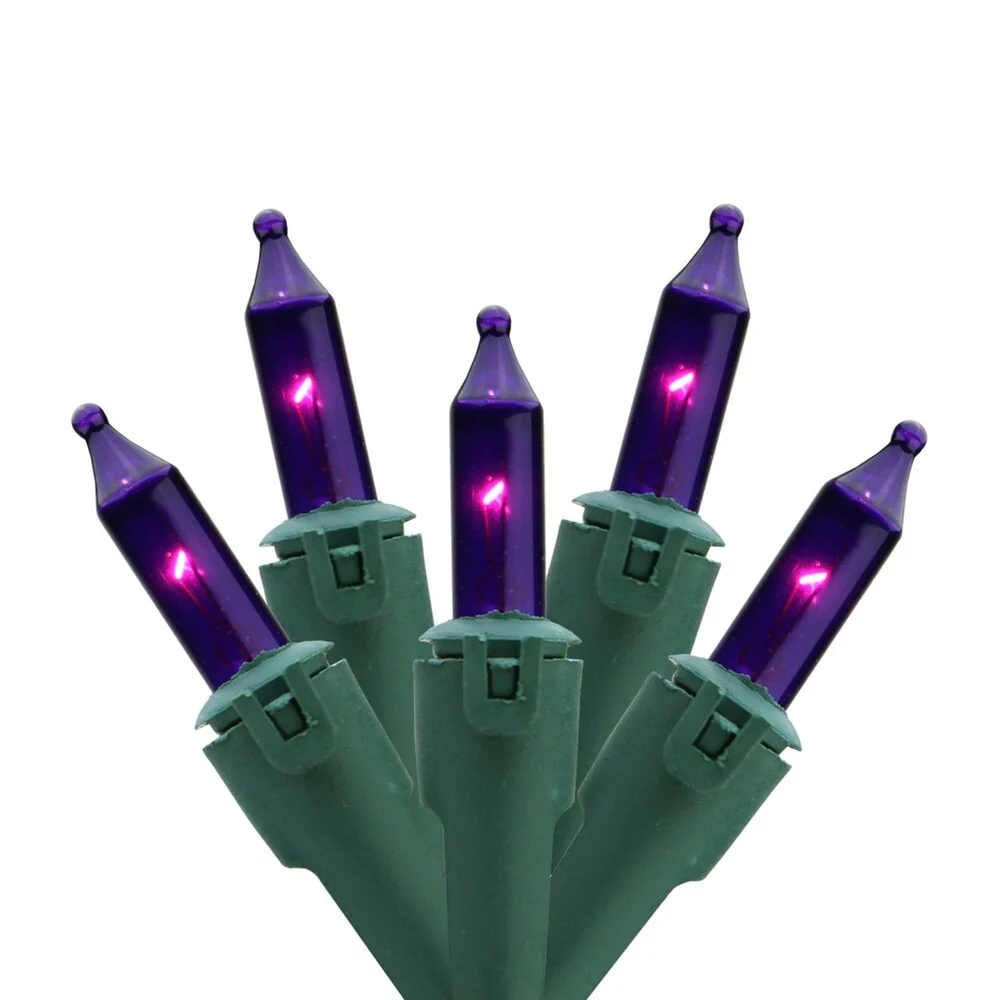 Set of 50 Opaque Purple Commercial Grade Mini Christmas Lights 5.5" Spacing - Green Wire