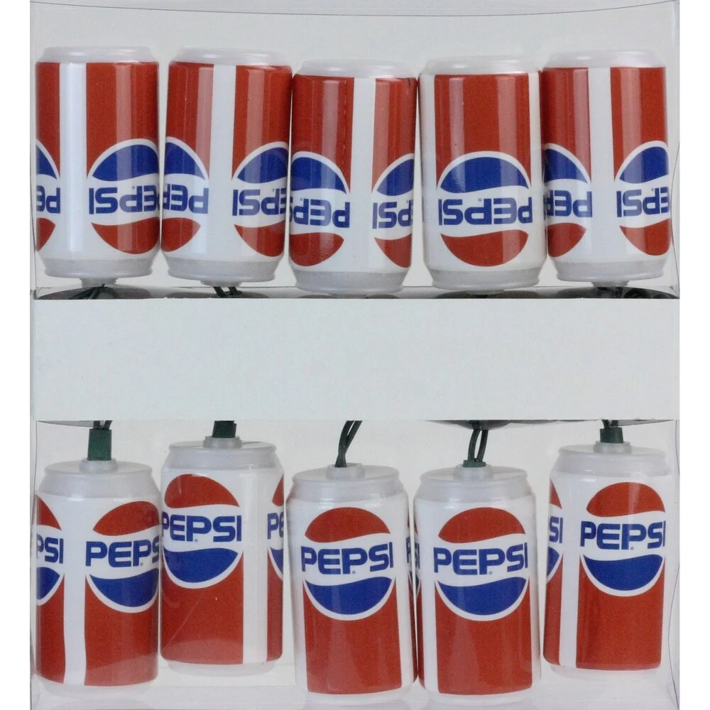 Set of 10 Classic Pepsi Can Novelty Christmas Lights - Green Wire