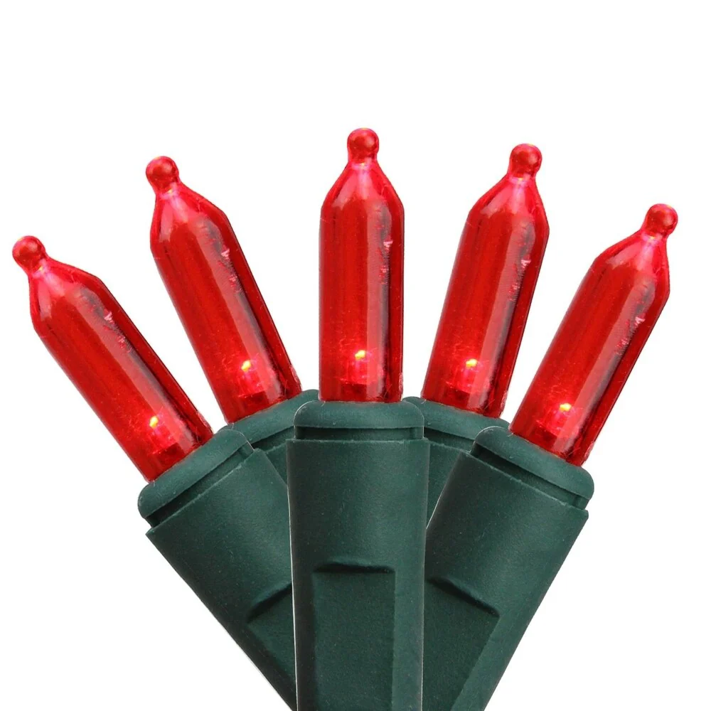 Set of 100 Red LED Mini Christmas Lights - Green Wire