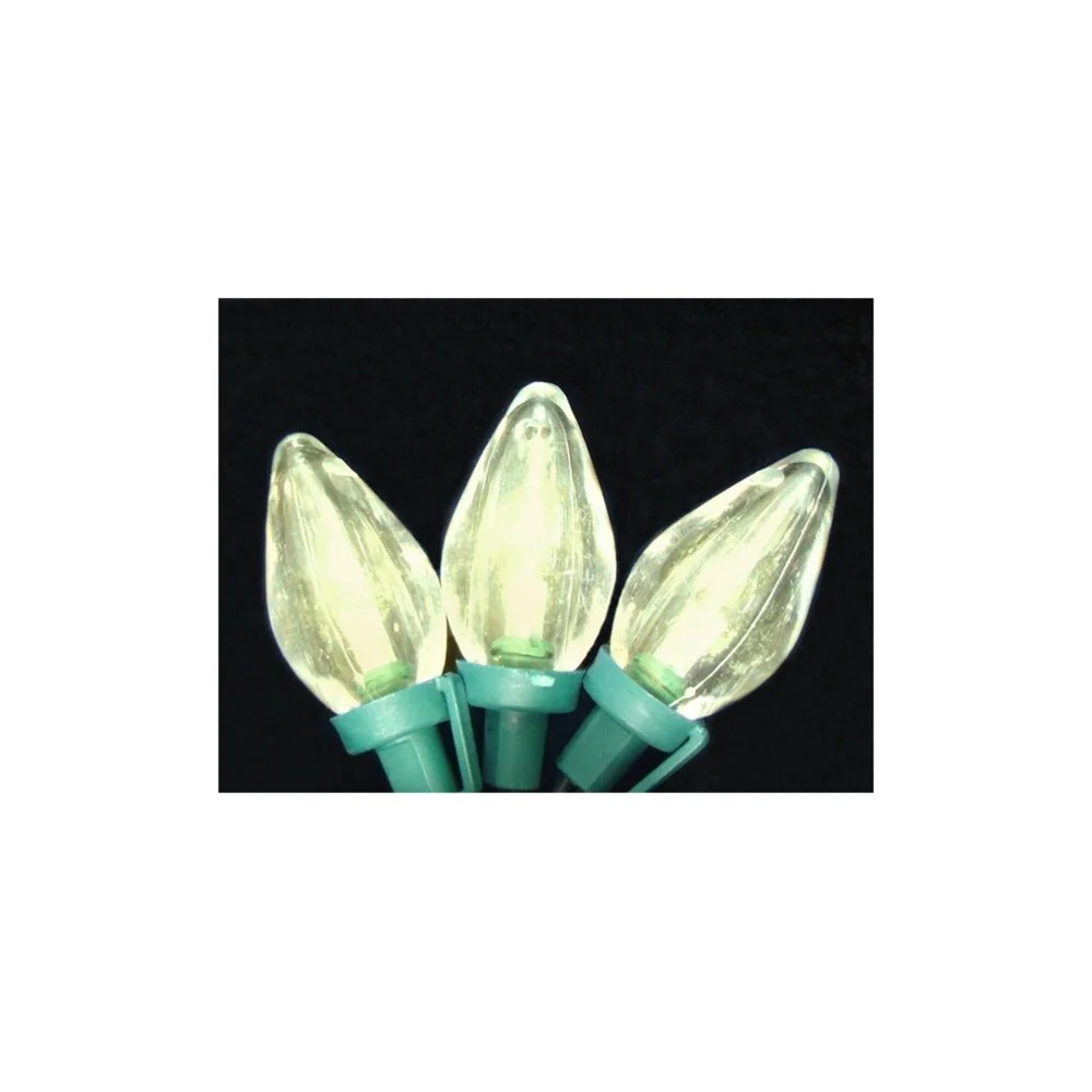 Set of 100 Warm White LED C7 Christmas Lights 4" Bulb Spacing - Green Wire
