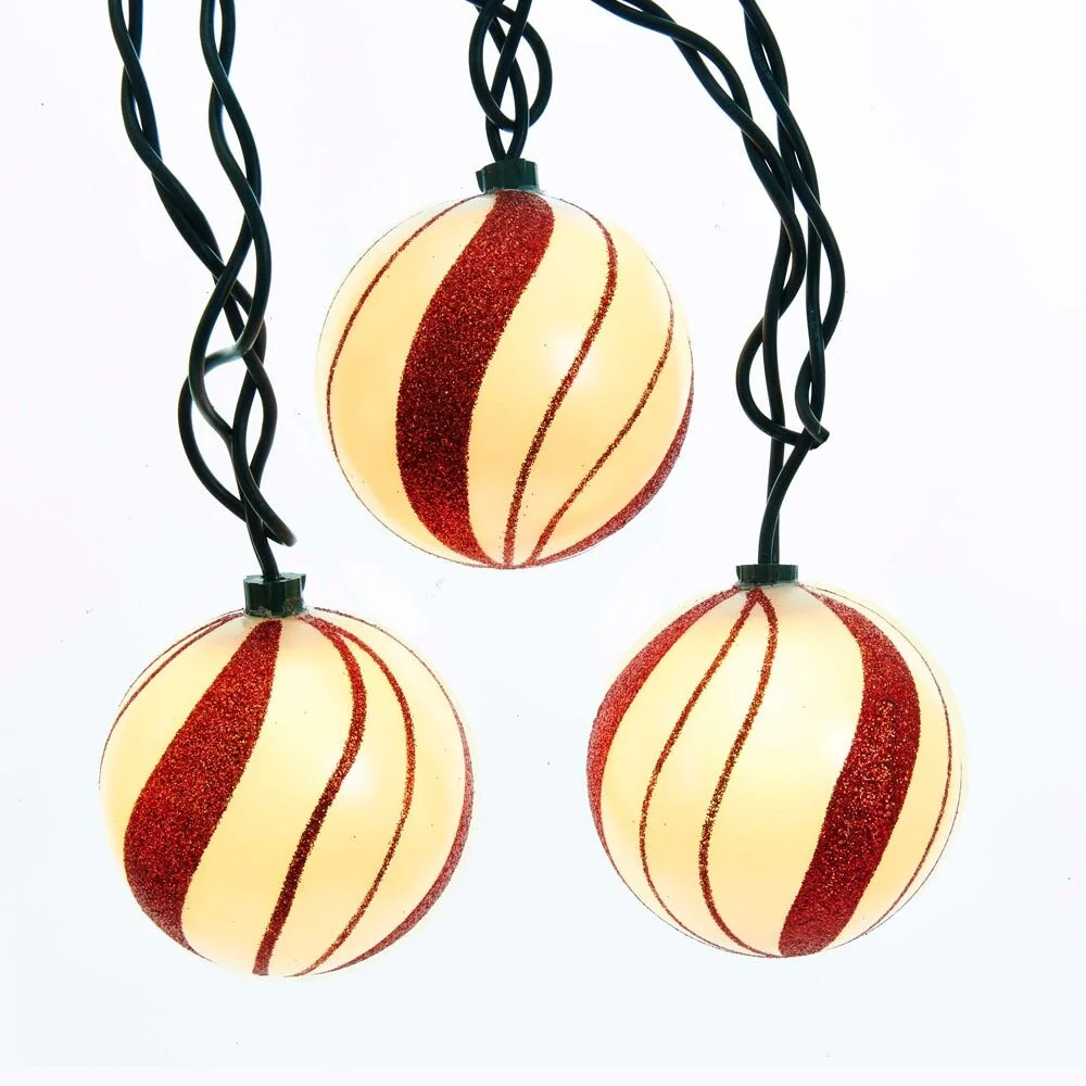 Kurt Adler 10-Light Red and White Fancy Balls Light String Set - 12"