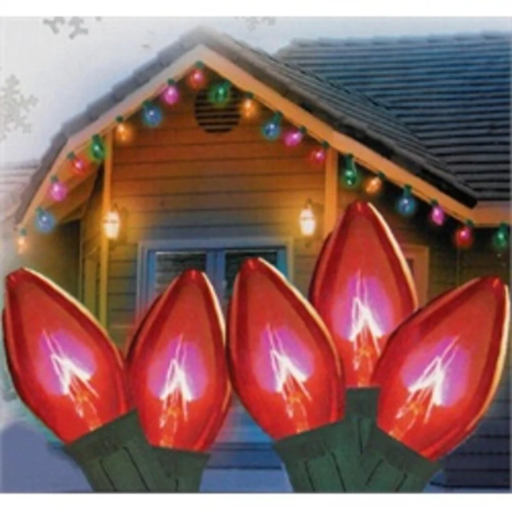 Set of 70 Multi LED C6 Christmas Lights - Green Wire