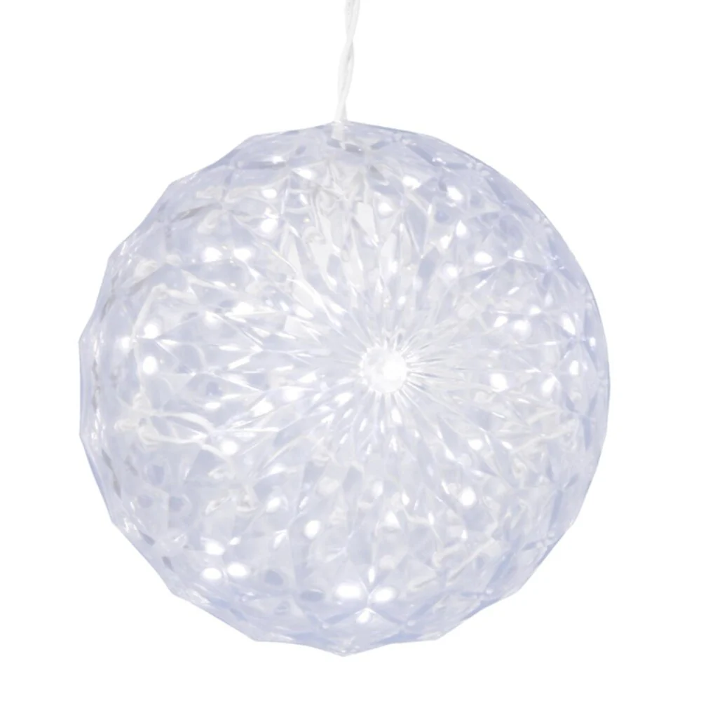 White LED Lighted Hanging Christmas Crystal Sphere Ball Outdoor Decoration 6"