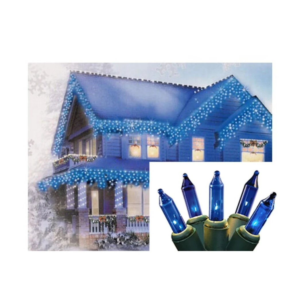 Set of 100 Blue Mini Icicle Christmas Lights - Green Wire