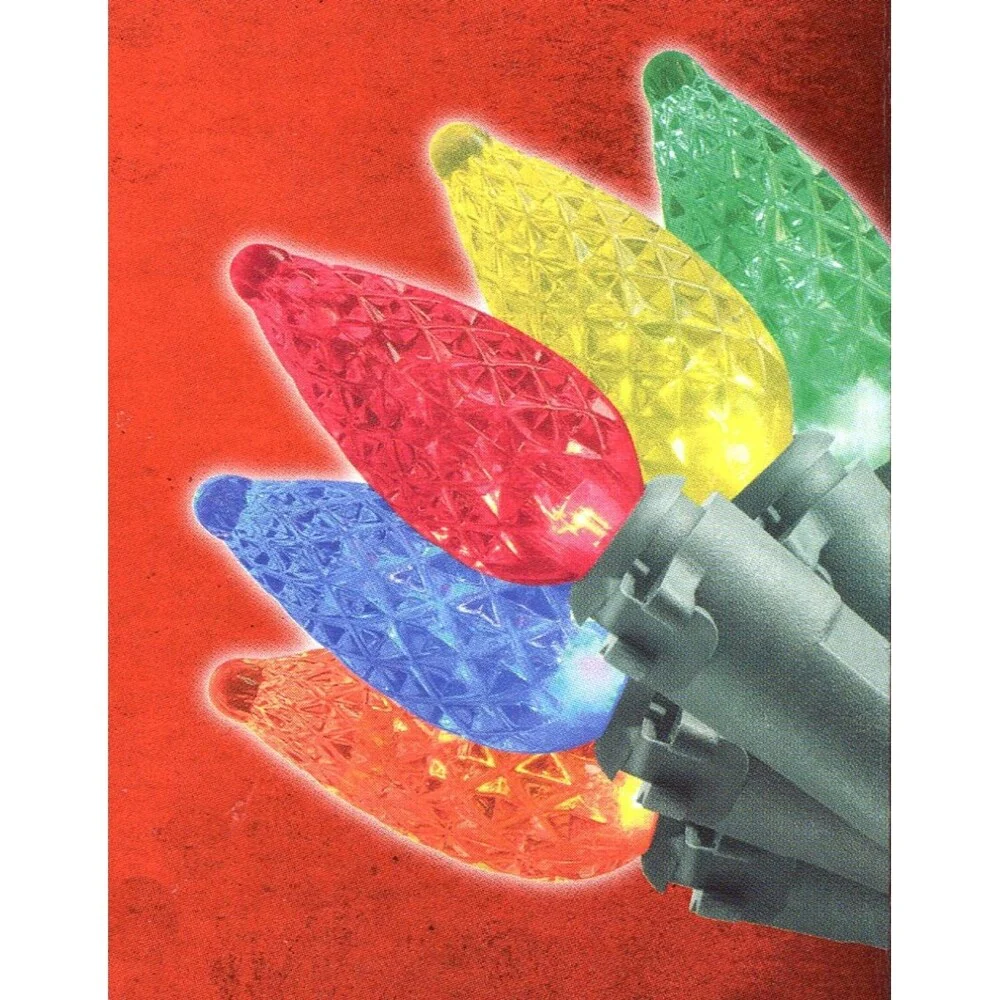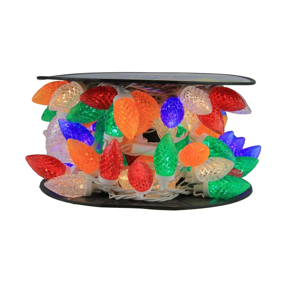 100 Commercial Length Multi-Color LED Faceted C9 Christmas Lights on Spool 5" Spacing - White Wire