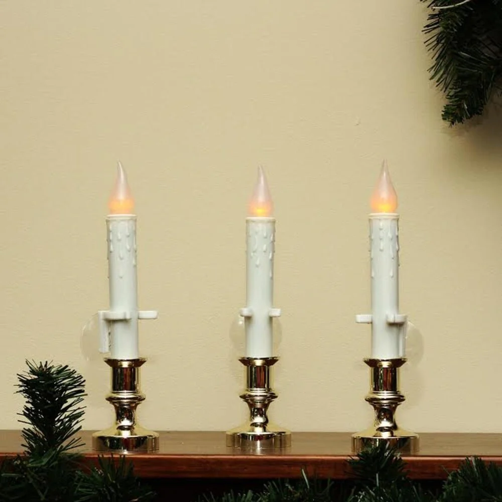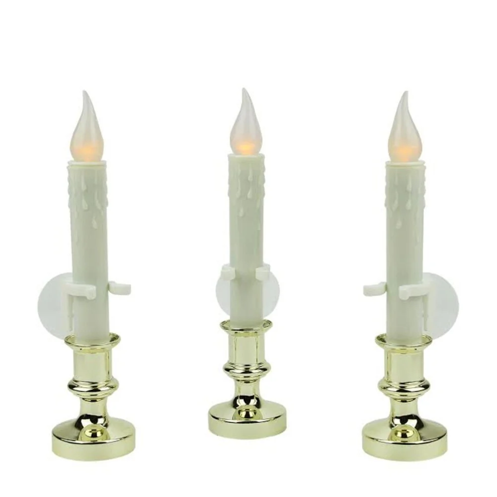 Pack of 3 LED Battery Operated Flickering Window Christmas Candle Lamps 8.5"