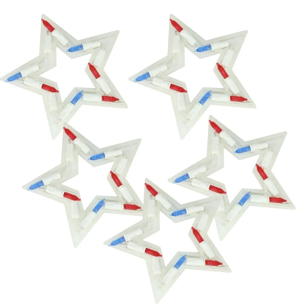5 Red White and Blue Patriotic 4th of July Star Shaped Lights - 6ft. White Wire