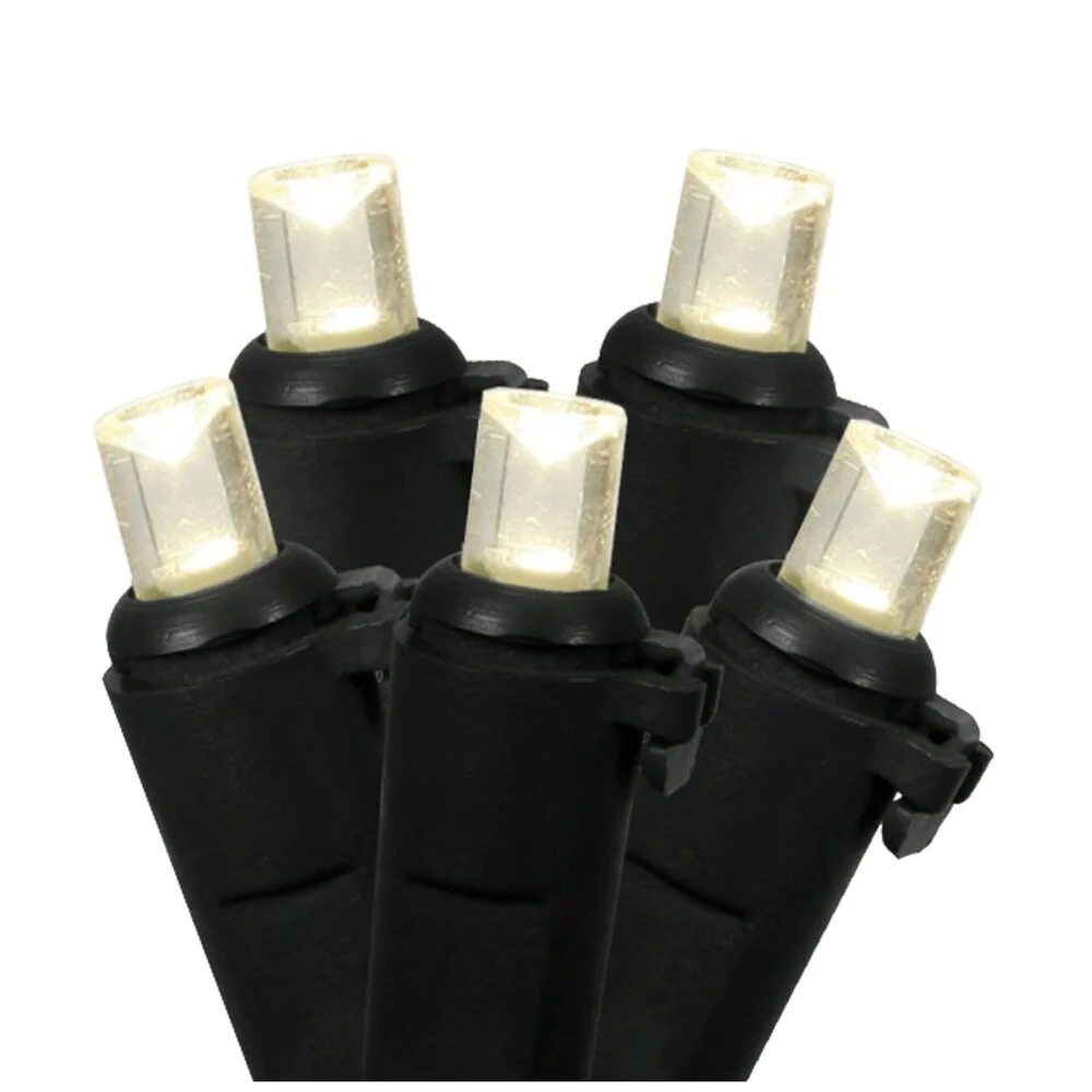 Set of 100 Warm Clear LED Wide Angle Christmas Lights 4" Spacing - Black Wire
