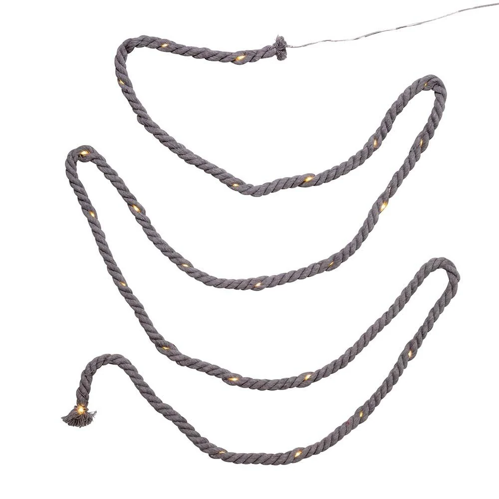Kurt Adler 30-Light Battery-Operated Gray Rope with Warm White Superbright LED Light Set