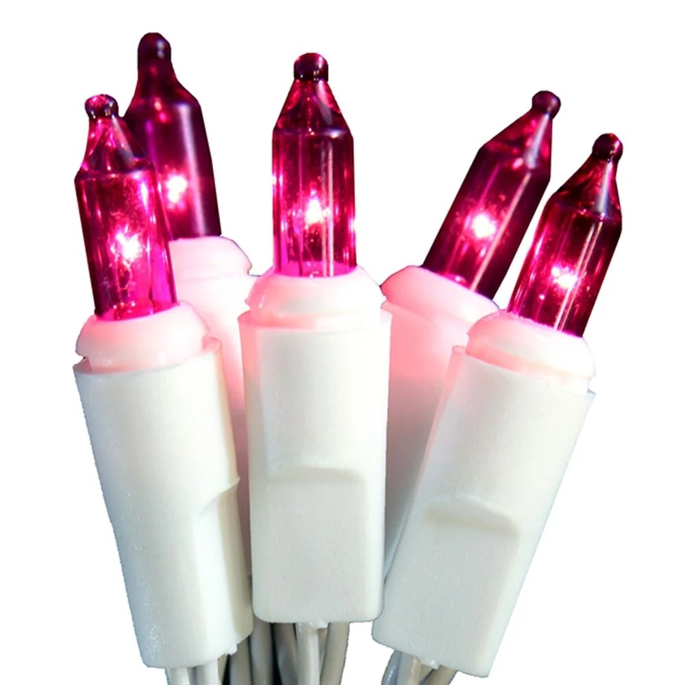 Set of 10 Battery Operated Pink Mini Christmas Lights - White Wire