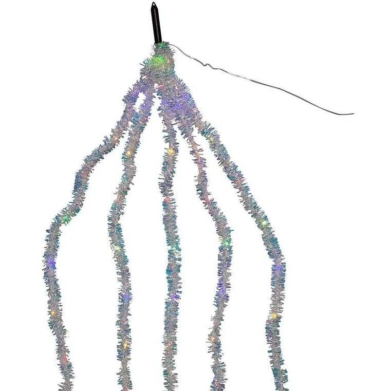 Kurt Adler 6.5-Foot Multi-Color Silver Iridescent Tinsel Cascade Light Set
