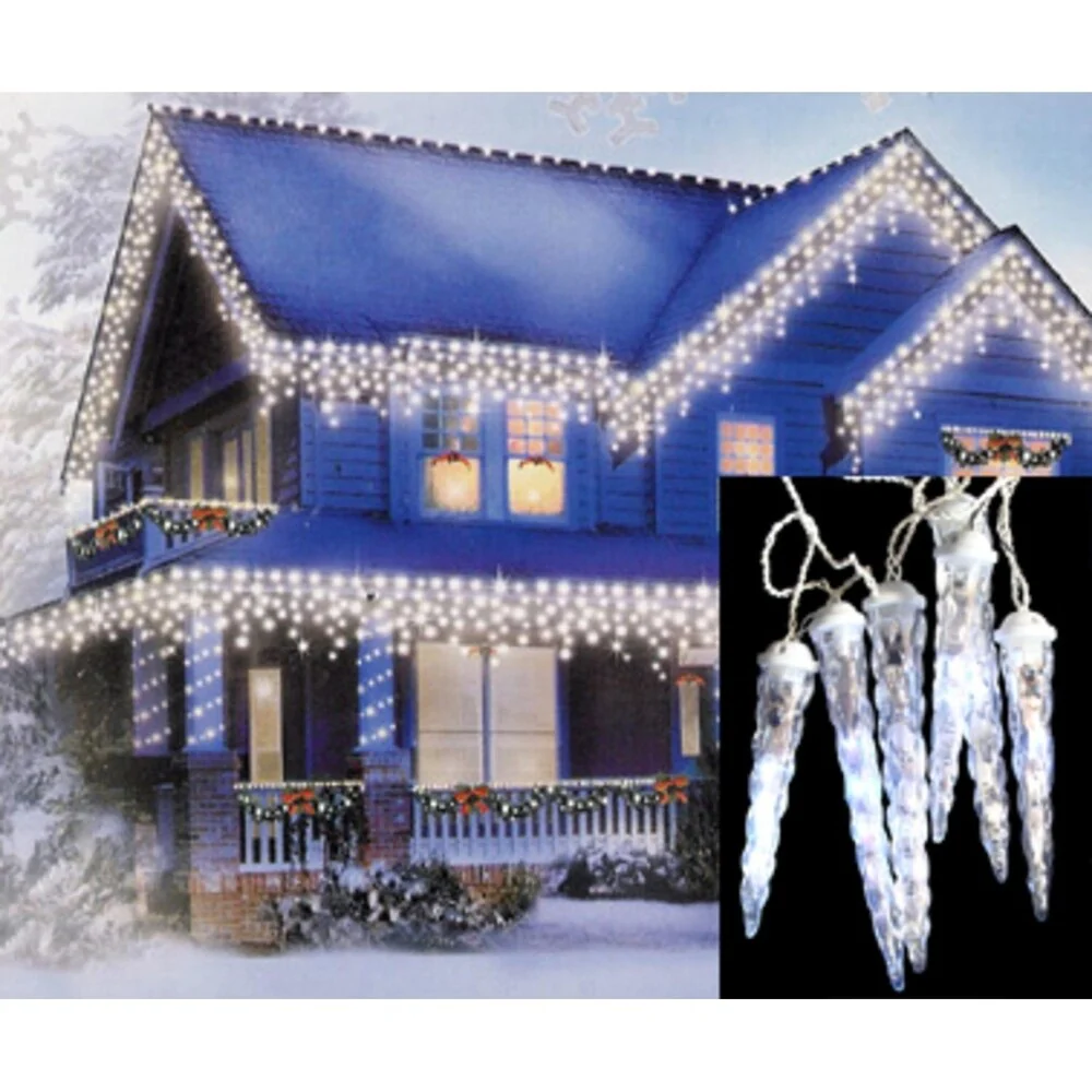 Set of 6 LED Polar White Dripping Icicle Shape Christmas Lights - White Wire