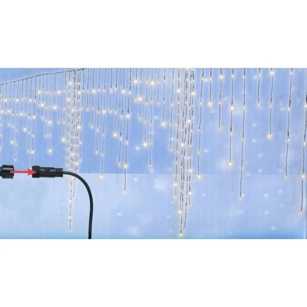 Set of 370 Cool White LED Christmas Giant Icicle Lights - Connect 24V Extension Set - Clear Wire - N/A