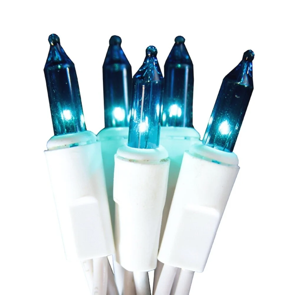 Set of 100 Teal Mini Icicle Christmas Lights - White Wire