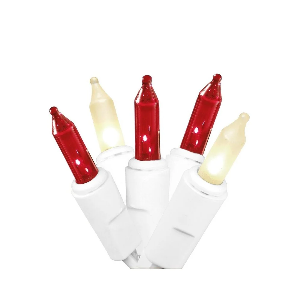 Set of 100 Red and Frosted White Mini Christmas Lights - White Wire