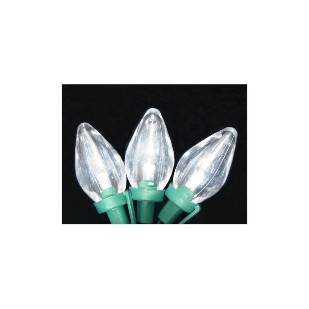 Set of 50 Pure White LED C7 Christmas Lights - Green Wire