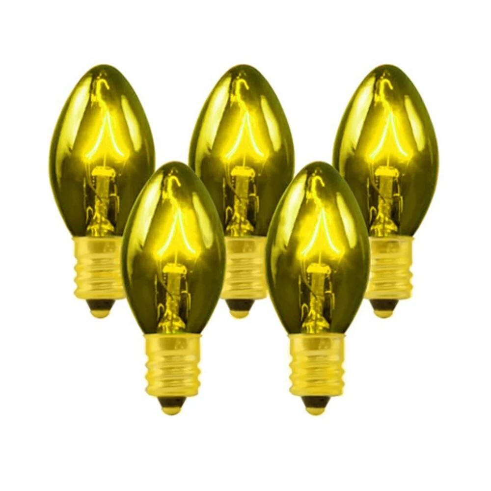 Club Pack of 100 C7 Transparent Gold Replacement Christmas Light Bulbs