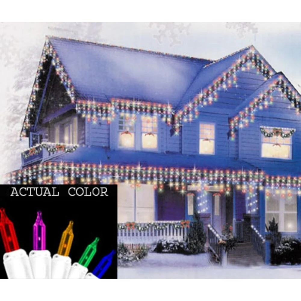 Set of 100 Multi Mini Icicle Christmas Lights - White Wire