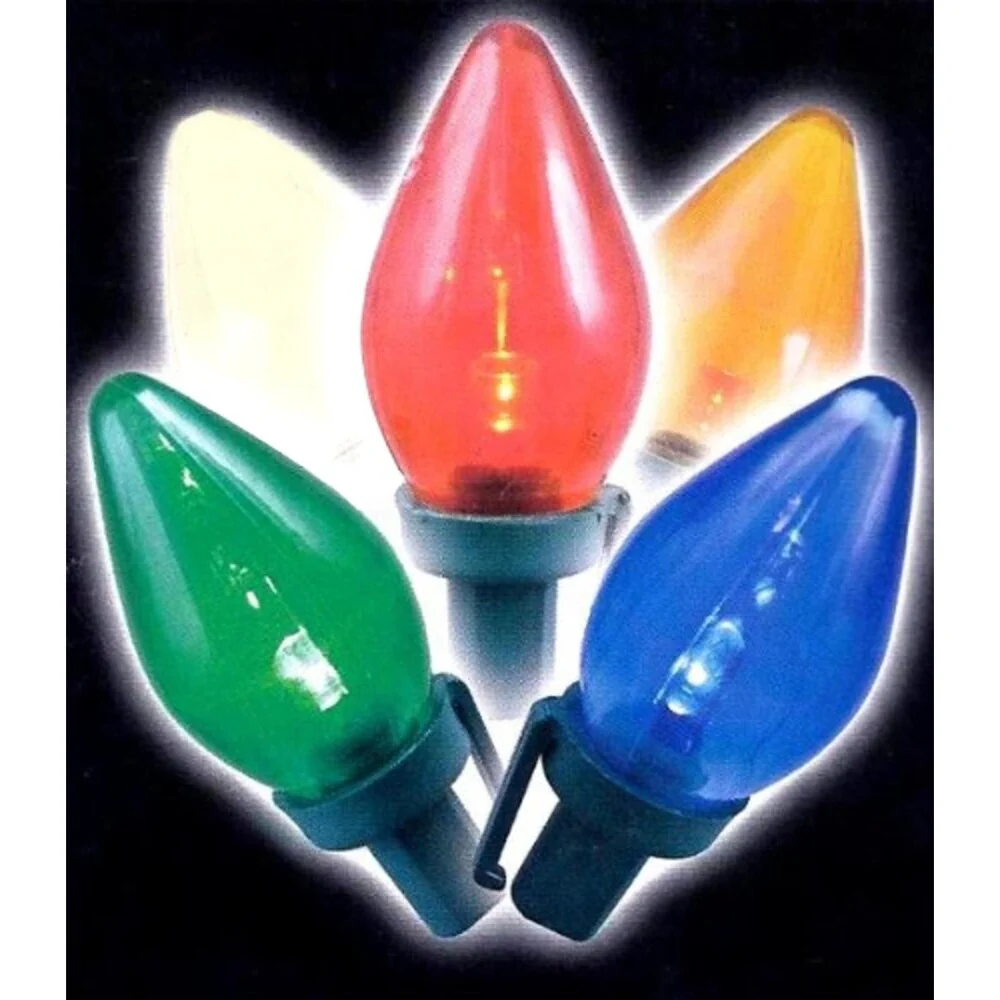 Set of 50 Transparent Multi Color LED C9 Christmas Lights - Green Wire
