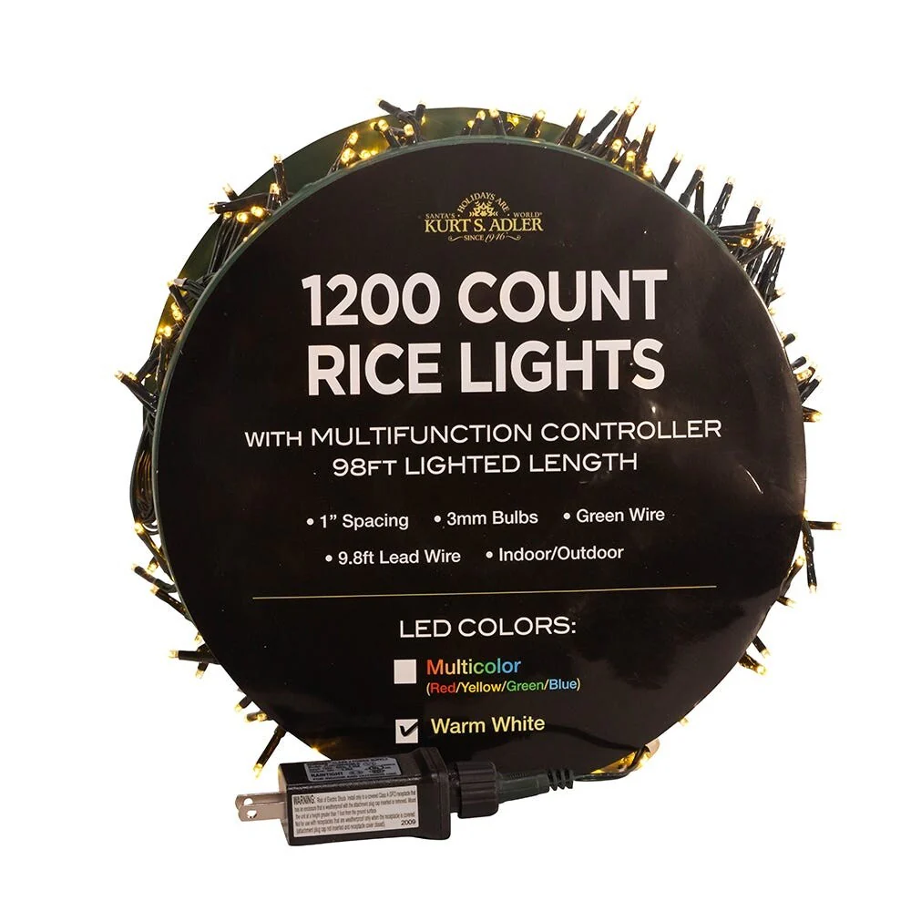 Kurt Adler 1200-Light 98-Foot Warm White LED Rice Light Set
