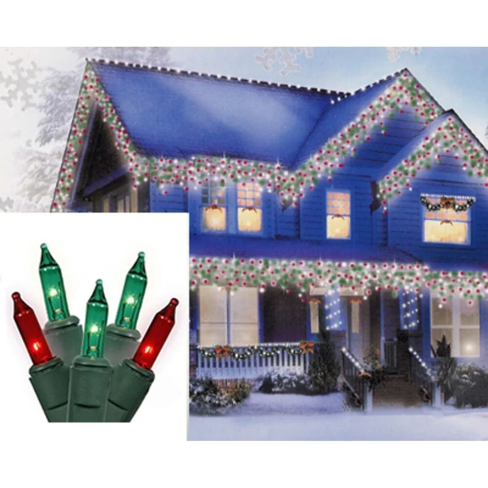 Set of 100 Red and Green Mini Icicle Christmas Lights - White Wire