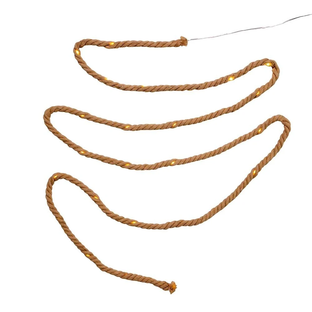 Kurt Adler 30-Light 9.8 Foot Battery-Operated Natural Brown Rope with Warm White Superbright LED Light Set
