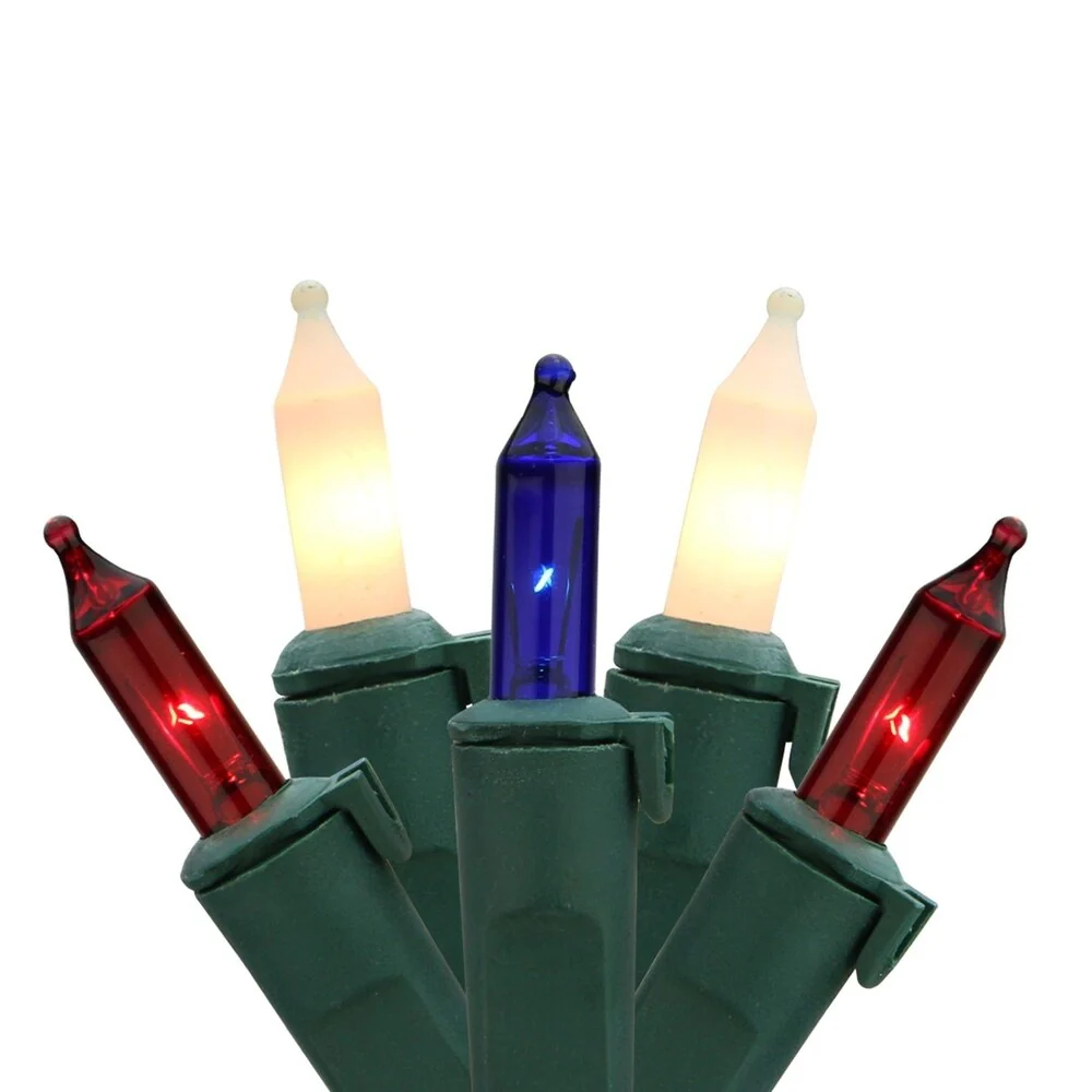 Set of 50 Red Frosted White & Blue Patriotic Commercial Mini Christmas Lights 5.5" Sp - Green Wire