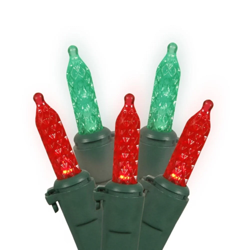 Set of 70 Red and Green LED M5 Mini Christmas Lights - Green Wire