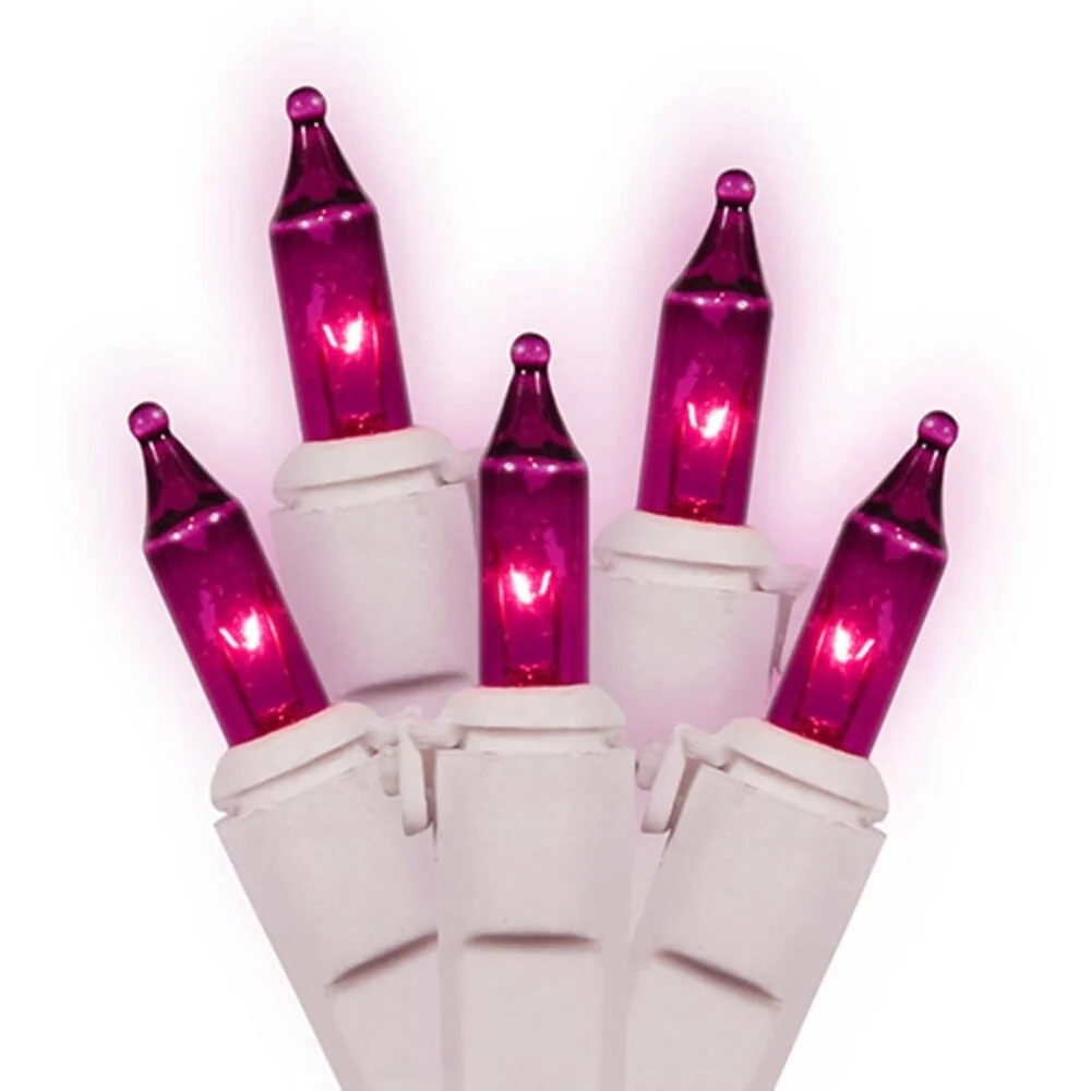 Set of 100 Pinkish Purple Mini Christmas Lights - White Wire
