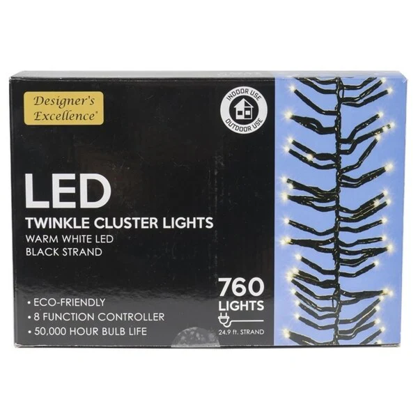 Kurt Adler 1000-Light 32.8-Foot Multicolored LED Cluster Garland