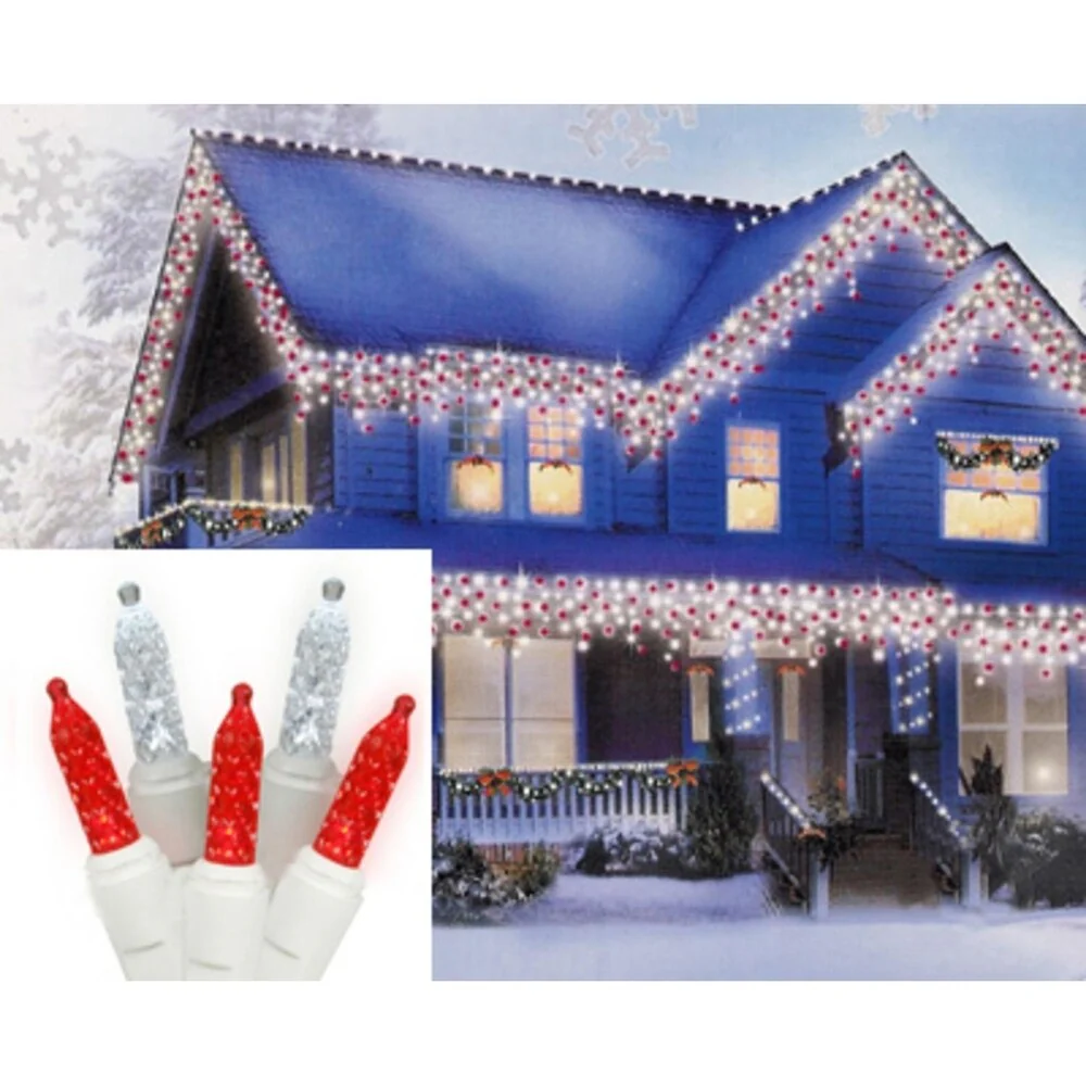 Set of 70 Red and Cool White LED M5 Icicle Christmas Lights - White Wire