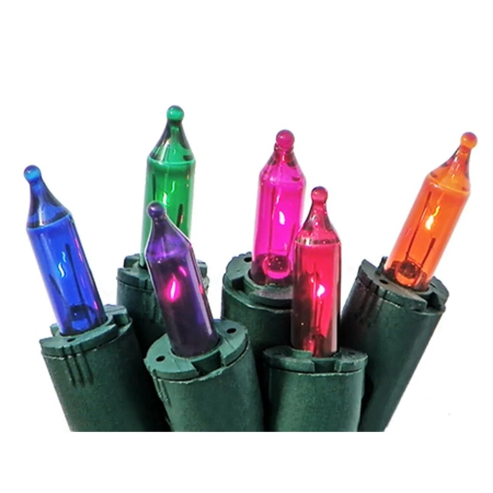 Set of 50 Multi-Color Perm-O-Snap Mini Christmas Lights - Green Wire