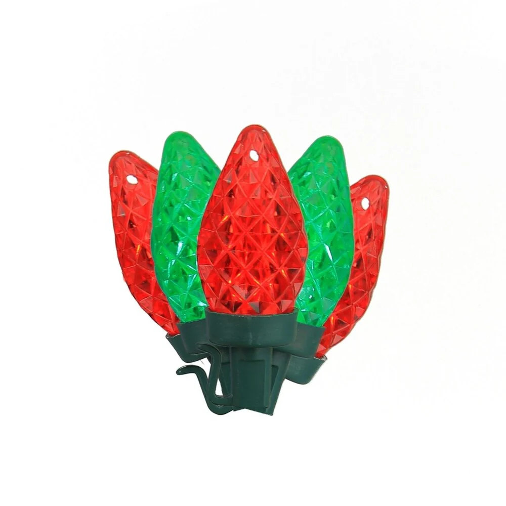 Set of 50 Red and Green LED C7 Faceted Christmas Lights 5" Spacing - Green Wire