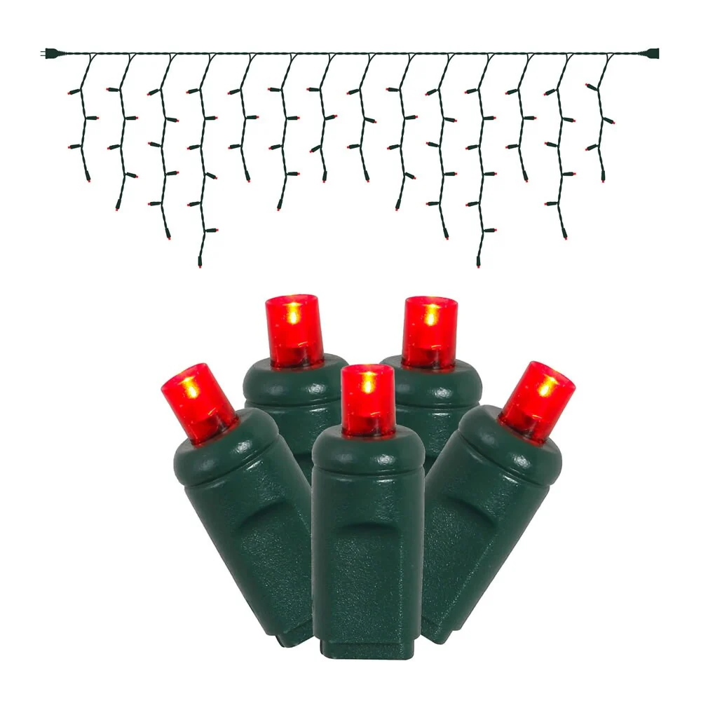 Vickerman70 Red Icicle Wide Angle LED Light on Green Wire, 9' Christmas Single Mold light Strand