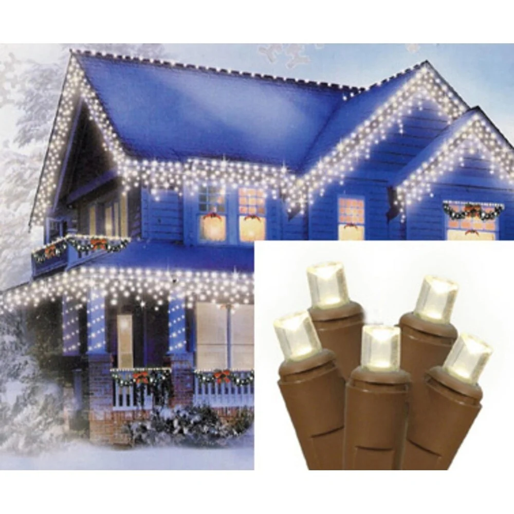Set of 70 Warm White LED Wide Angle Icicle Christmas Lights - Brown Wire